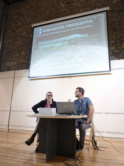 Sastiñan egindako aurkezpenean Alex Mendikute (AOBT) eta Etor Telleria (Ondare Babesa) izan ziren