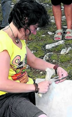 A Miriam y a otros dos compañeros les ha tocado excavar la parte exterior de la morada de los pastores. A otros, el interior del círculo de piedras que forma la cabaña. Y otros cuatro presencian una demostración de talla de sílex de la mano de una experta en el tema de la UPV. De los once voluntarios, tres son de Torduera, un pueblo situado en la provincia de Barcelona; dos de Valladolid; uno de Jaén y otro de Valencia. El resto, del País Vasco (Mendaro, Amurrio, Basauri y Portugalete). Tienen entre 18 y 30 años y participan en un campo de trabajo organizado por la Diputación alavesa y la Obra Social de La Caixa.
