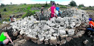 Rafa Varón, arqueólogo de Ondare Babesa, empresa dedicada a la arqueología y documentación y que dirige este campo de trabajo, le echa un cable. «Cuando llegamos, esto era sólo un montón de escombros, pero poco a poco va cogiendo forma. La cabaña no debía de ser muy alta», describe. «Los pastores de la Mesta que bajaban hacia la meseta castellana debieron encontrar este lugar, idóneo para traer a sus 9.000 cabezas. Establecieron una serie de cabañas. Esta es una de ellas», cuenta Varón.