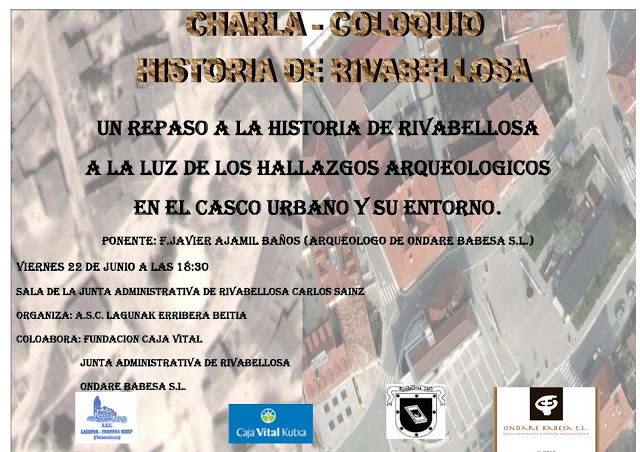 El viernes, día 22 de junio, en la sala de la Junta Administrativa de Rivabellosa, nuestro compañero Javier Ajamil dará una charla sobre los hallazgos arqueológicos que se han producido en su caso urbano y entorno en los últimos años y su contribución a la rica historia de esta localidad alavesa.
