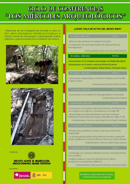 El Instituto Alavés de Arqueología ha programado para esta ocasión las charlas correspondientes al Castro de Urisolo, dirigidas por Armando Llanos, y del yacimiento de Aldaia, dirigida por Rafa Varón.