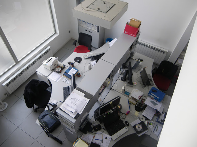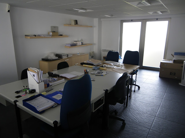 despacho separado pero totalmente comunicado con amplia zona de trabajo y armarios.