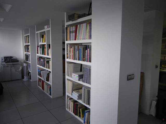 separación mediante amplia librería de obra que permite discurrir entre las distintas zonas (zona de trabajo y despacho) sin interceder entre los distintos ambientes.